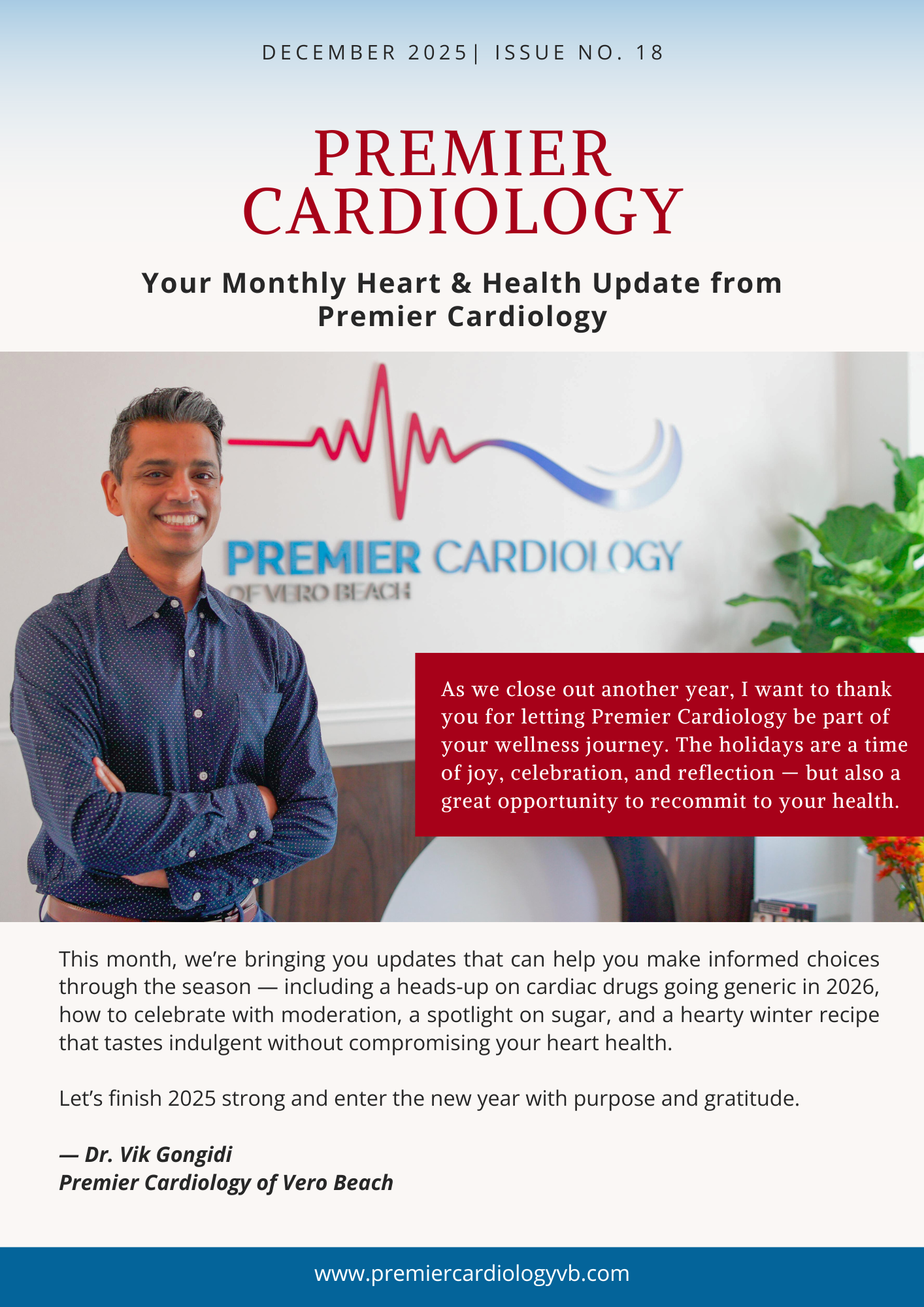 As the holiday season approaches, I want to take this opportunity to wish you and your loved ones a joyful, peaceful, and heart-healthy end to the year. This time of year invites reflection, gratitude, and meaningful connections, and at Premier Cardiology, we are truly grateful for the trust you’ve placed in us to care for your heart health. While the holidays bring moments of joy, they can also bring challenges—but with mindful choices and balance, we can protect what matters most: our health and the precious time spent with those we cherish. From my family and the entire Premier Cardiology team, we wish you happiness, wellness, and a vibrant holiday season filled with love and care. – Dr. Vik Gongidi